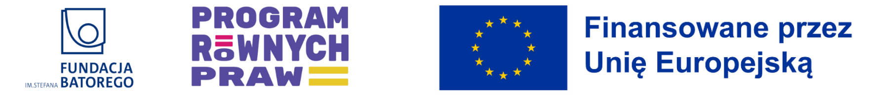 Projekt finansowany przez Komisję Europejską w ramach Programu Równych Praw realizowanego ze środków programu CERV finansowanego ze środków Komisji Europejskiej w ramach programu „Obywatele, Równość, Prawa i Wartości” na lata 2021 – 2027.